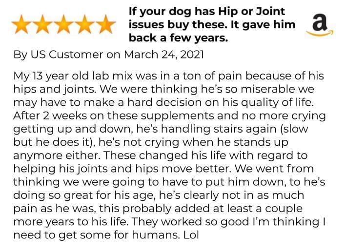 Disclaimer: each client testimonial that you see are made by verified purchasers on Amazon, and is based on what our clients tell us. We don't verify their health statements, we take their word for it. Giving your pets a happy and healthy life requires wholesome diet, exercise and giving them the micro nutrients their bodies need, and each of our customers works really hard to get those results for their furry friends. We don't guarantee any results.