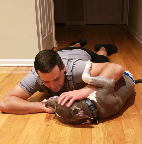 "So, I have this three legged dog who is pretty awesome! His name is Wrangler but we call him Pippy. Pip jumped off a cliff while on a hiking trip 7 years ago. It was a tough fight but in the end, he had to lose his leg.